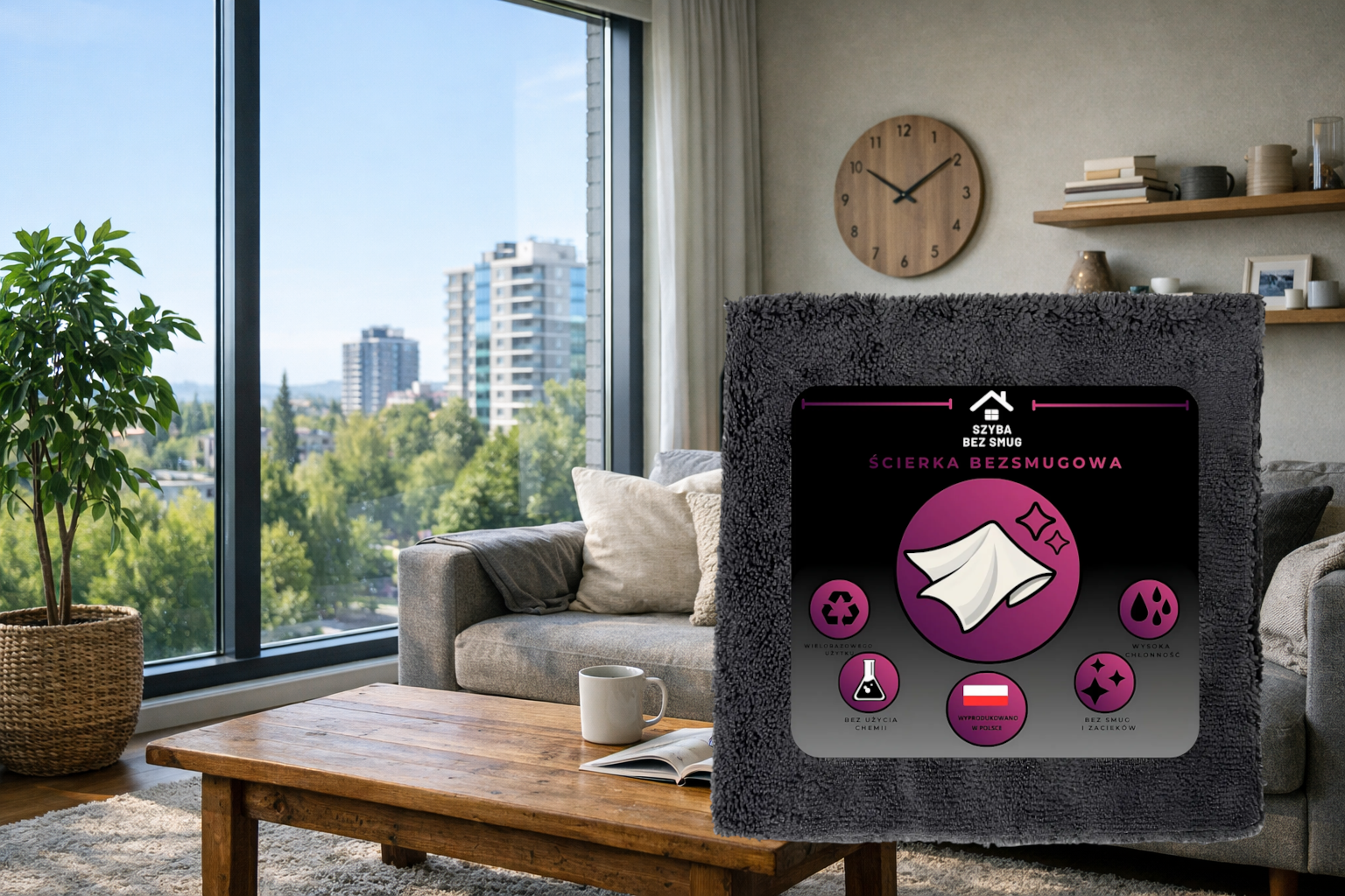 Ściereczki czyszczą okna bez użycia chemii, wykorzystując samą wodę i nie pozostawiają smug ani zacieków. Dzięki swojej wysokiej polskiej jakości ściereczki są wielorazowego użytku i są wykonane z porządnego materiału w przeciwieństwie do konkurencji!